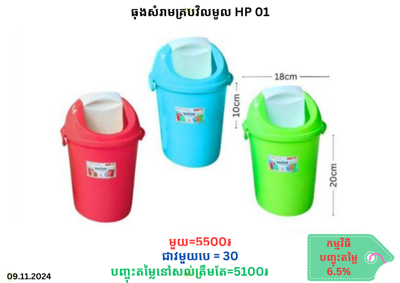 ធុងសំរាមគ្របវិលមូល HP 01 December 23, 2025 Posted in 5100, HP, ធុងសំរាម, ធុងសំរាមគ្របវិល, ធុងសំរាមគ្របវិលមូល, ធុងសំរាមគ្របវិលមូល HP