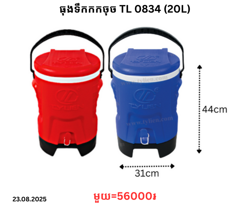 ធុងទឹកកកចុច TL 0834 (20L) December 19, 2025 Posted in 56000, TL, ធុងទឹកកក, ធុងទឹកកកចុច, ធុងទឹកកកចុច TL, ធុងទឹកកកផ្កា